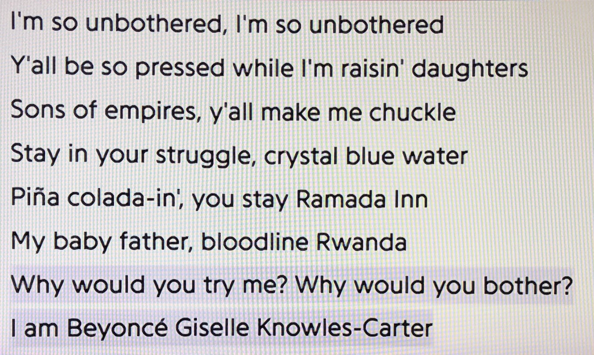 This is a hot topic in the Black community, and deserves its own post, but Beyoncé has mastered the art form of remaining unbothered.